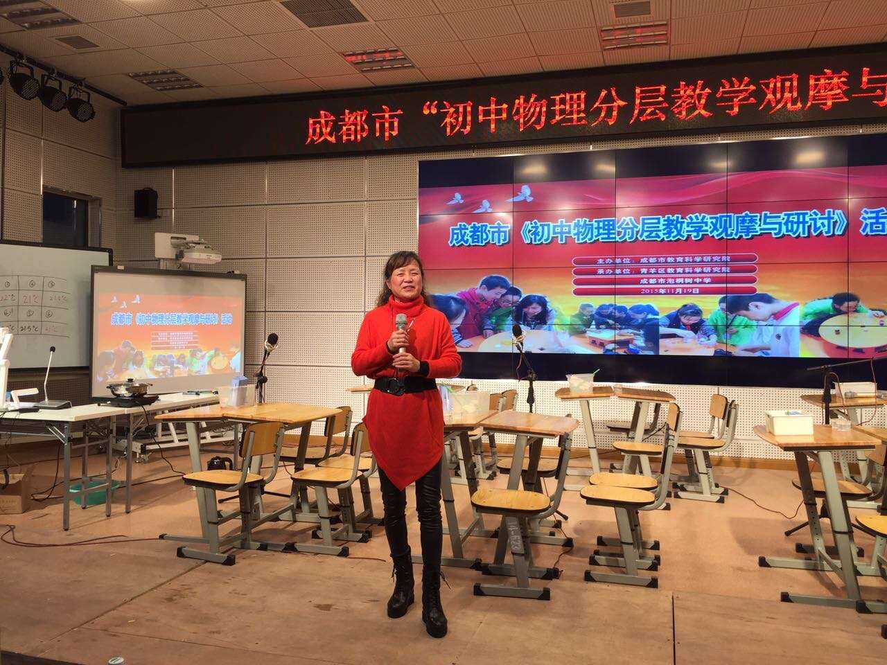 11月19日,成都市教育科学研究院主办,成都市泡桐树中学承办的成都市“初中物理分层教学教学观摩与研讨”活动在成都市泡桐树中展开。全市近350名中学物理教师参与本次活动。