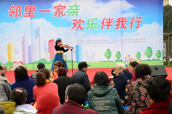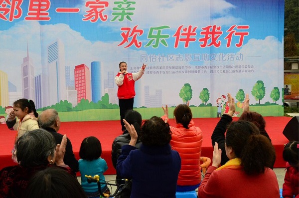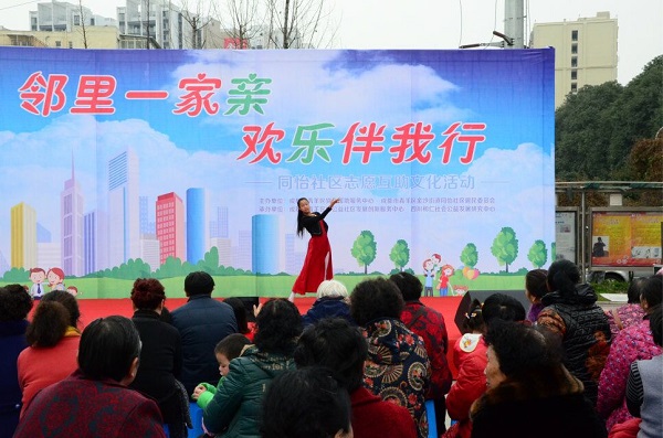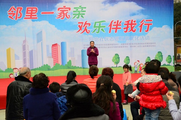 2016年2月27日下午,由青羊区党员援助服务中心和同怡社区居委会主办、怡公益社区创新服务中心和四川仁社会公益发展研究中心承办的“邻里一家亲,欢乐伴我行”同怡社区志愿互助文化活动,在同怡社区篮球广场,如期举行。