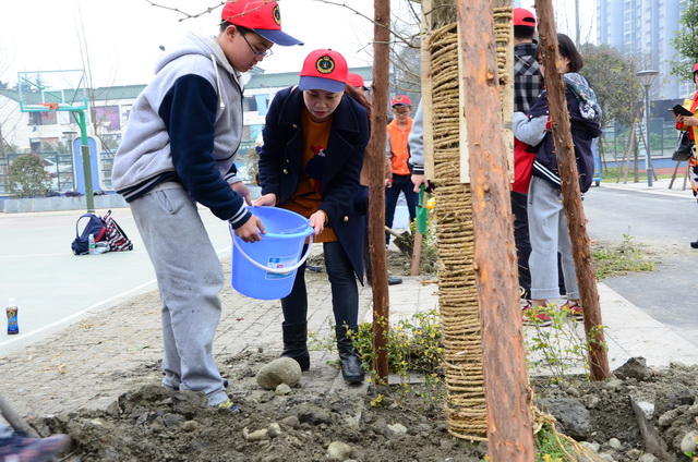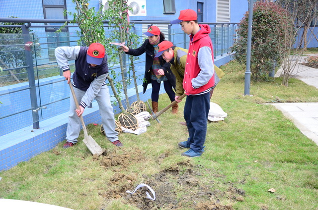 本次活动分为了四个小组,每个小组都在学校不同的点位,也有专门的老师负责每一个小组,参加植树的同学都是在学校平台进行了报名;在植树之前,同学们都做好了充分的准备,许多家长也跟孩子们一起来到学校参与植树;