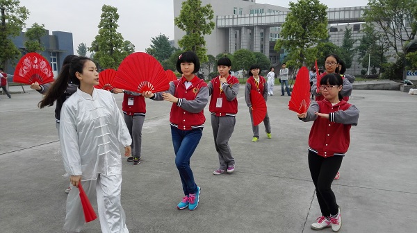 游学第一天——同学们来到美丽的药用植物园寻药认药,了解到了常见中药的性能功效。还走进神奇的中药材标本馆,识别常用药材,亲手制作了中药香囊。分享会上,成都中医药大学校武术队还为同学们表演了精彩的武术节目。在大哥哥大姐姐的带领下,同学们练起太极扇、五禽戏、八段锦等传统养生保健运动,一招一式比划得有模有样!