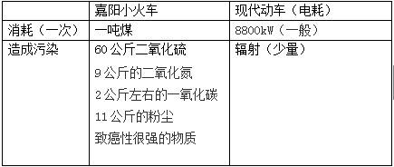 可是,我们来对比一下现代化火车和嘉阳小火车的消耗量: