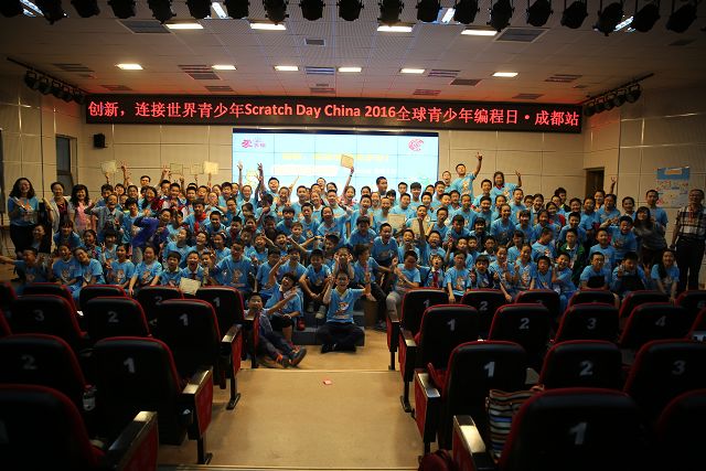 Scratch Day 是全球最著名的青少年编程盛会。今年的 Scratch Day,全球将有超过200场青少年编程主题活动同步进行!将在北京(5月14日)、成都(5月13日)两地同时举办 Scratch Day China 2016大型主题活动。5月13日下午,来自区内部分中小学以及“智慧营”的中小学生共计130名Scratch爱好者,齐聚我校的多功能厅参加“Scratch Day China 2016 全球青少年编程日·成都站”的活动,本次活动由MIT Media Lab 、爱突破教育以及青羊区教科院联合主办,我校承办。活动伊始举行了简短的开幕式,青羊区教育局党组成员、徐琨副局长为活动致词,区教育局宣传办郑礼主任、区教科院刘大春院长、区电教馆张庆馆长、我校高仁辉校长参加了开幕式的活动。