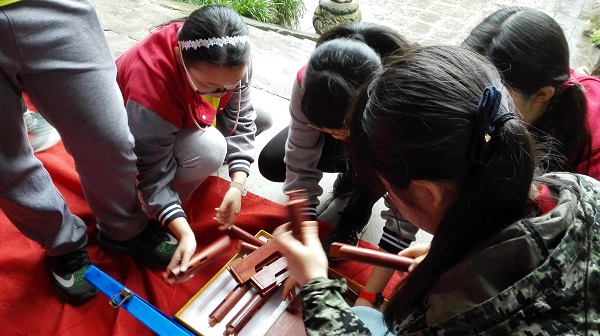 自贡号称“盐都”绝非浪得虚名,据考证,自贡开采井盐已有2000年的历史。在这里,同学们看到了不同时期、不同形制和用途的制盐工具,充分感受到了历代盐工创造的精湛的井盐技术和工艺。
