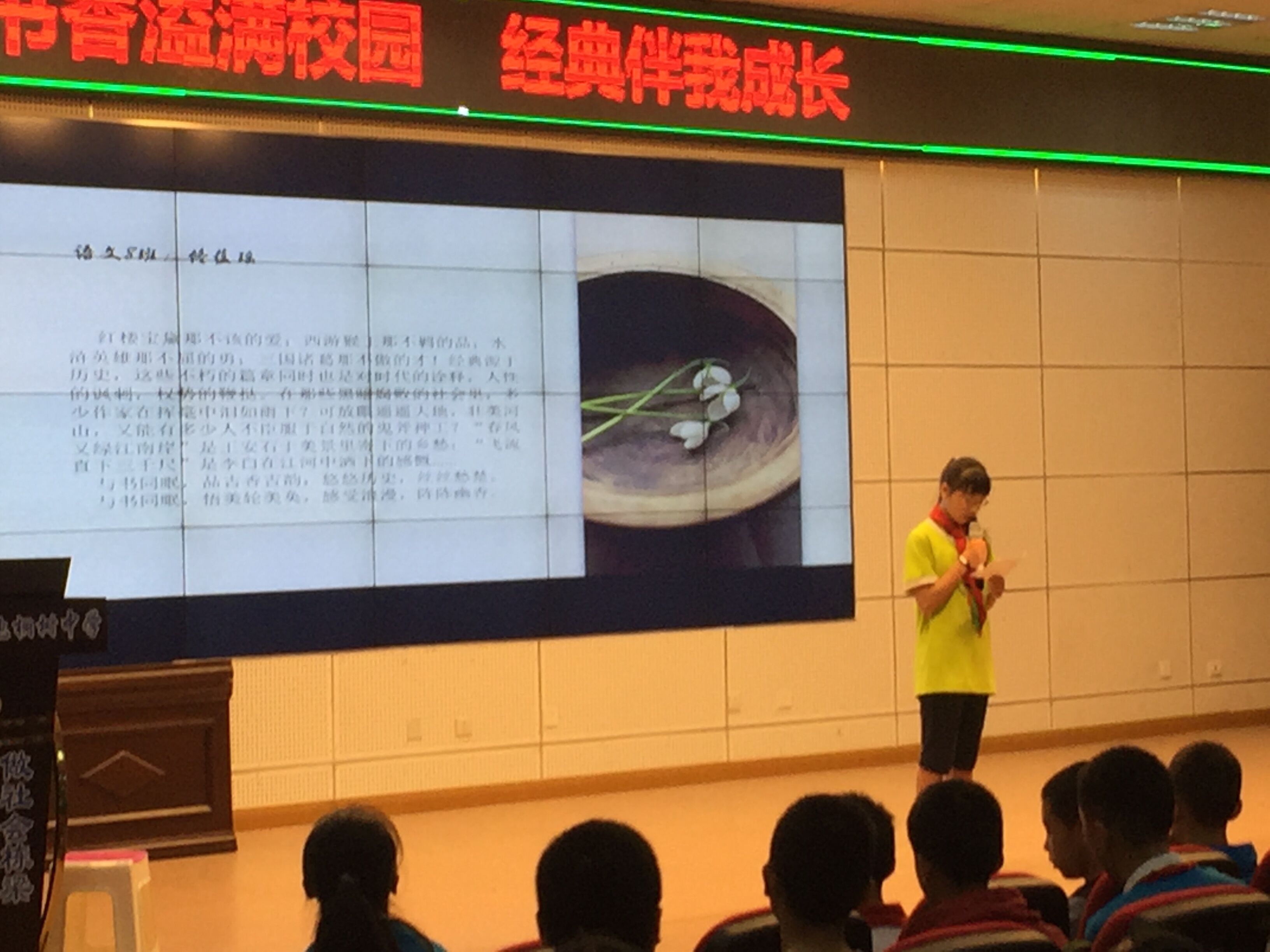 本周的晨曦有约由20018级部语文组承办,主题为“书香溢满校园,经典伴我成长。”