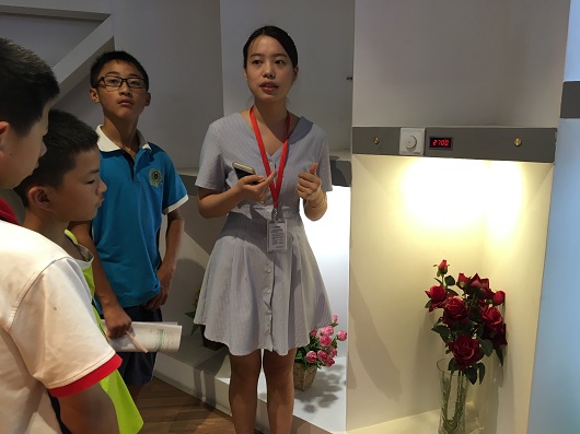 通过工作人员的讲解,同学们发现,灯具除了照明之外,还可以变成能上网的智能灯泡,也可以运用到农作物的种植领域,让植物在没有阳光的情况下依然可以茁壮生长,为人类生活提供便利。