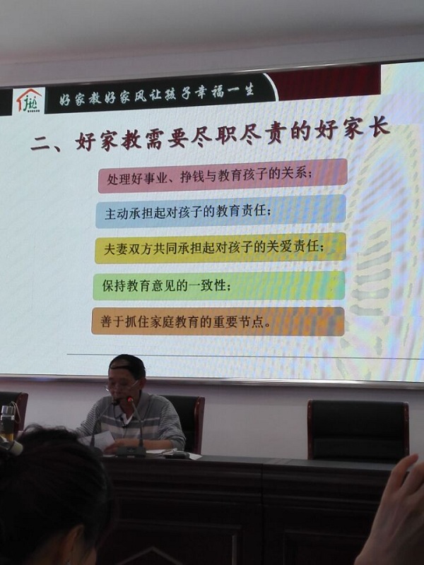 幸运的是,我们这次讲座的主讲是资深家庭教育顾问陈文清教授。陈文清教授是教育部关工委创建全国优秀家长学校特聘顾问、四川省教育厅关工委理论组成员、成都市教育局关工委秘书长。他的课程幽默风趣,最为关键的是可操作性强,我们的学生家长对他的讲座评价很高,同时受益匪浅。