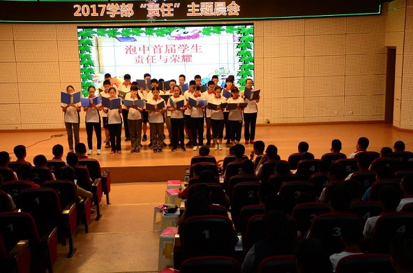 我想,生命是什么?生命是记忆。在我们每个人的生命中,都有一些抹不去的记忆,小时候受到的委屈,得到自己最想要的礼物、被老师当众表扬等等,无论时隔多久,都依然历历在目,仿佛事情就是发生在昨天。作为泡中首届学生,你们就是学校的名片。你们的成绩,你们的将来都会被人们传颂,所以,你有责任创造属于学校的也该属于你自己的荣耀与辉煌,你们的成败得失将会对学校产生深远的影响,作为泡中首届学生,你们要担负起学校的责任与荣耀,这是你们的使命,责无旁贷!