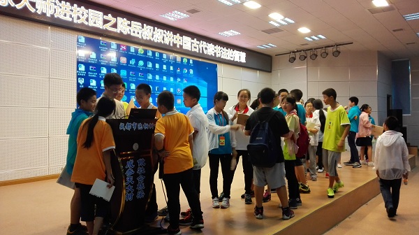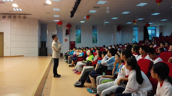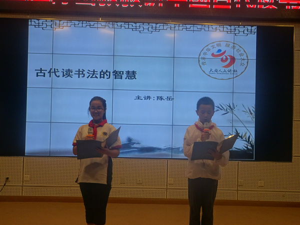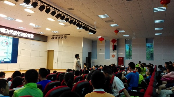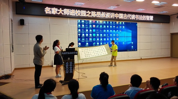 9月14日,泡中19学部“读书吧,少年!”社团,在学校的阶梯教室举办了“名家大师进校园”活动。本次活动的嘉宾是成都电视台著名少儿节目主持人陈岳叔叔。本次讲座的主题是“中国古代读书法的智慧”。