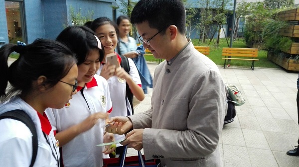 陈岳叔叔的精彩讲座让大家受益匪浅,为了表达我们诚挚的谢意,“读书吧,少年!”社团的社长——廖芝莺填了一首词作为礼物送给陈岳叔叔。陈岳叔叔还与泡中吟诵社的同学们一起吟诵了《短歌行》。 这次活动在大家朗朗的吟诵声中圆满结束了,同时这次活动也得到了学校领导的关怀和赞赏。