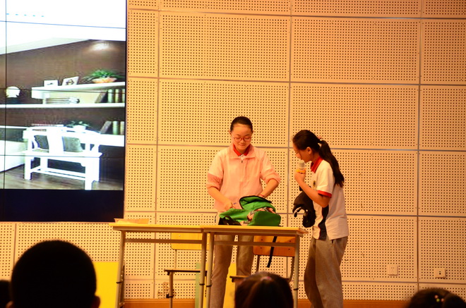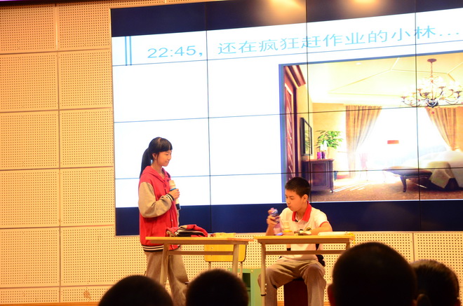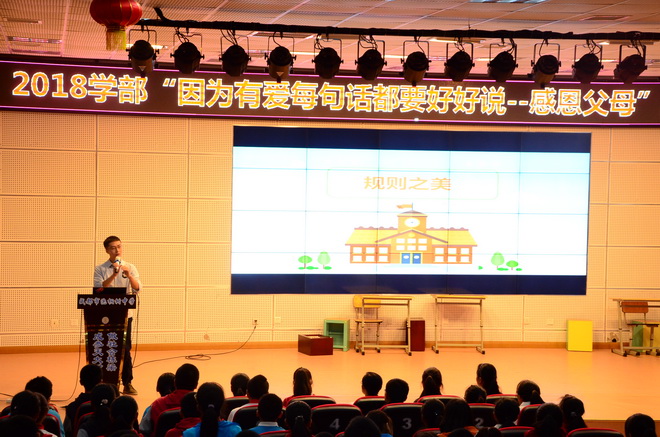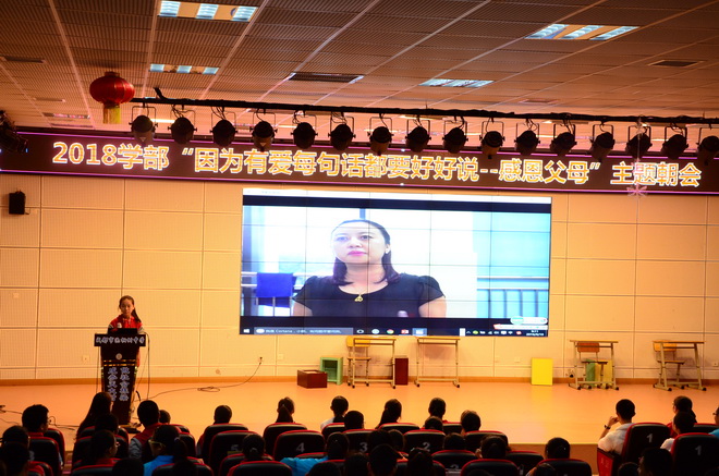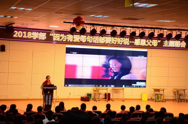 最后,我们欣赏了《因为有爱,每句话都要好好说》的公益片,在公益片中,本来深爱母亲的女儿却在电话中对妈妈发脾气,当导演把妈妈接电话的视频给女儿看时,女儿不禁流下了愧疚的泪水。同学们在观看影片以后,也纷纷表示不会再冲撞父母。