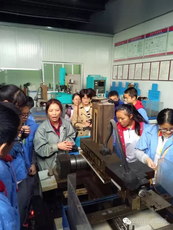 在工程师的带领下,同学们认识了车间用于车、洗、刨、磨的车床以及它们的用途,详细了解了车床是怎么利用“滚珠丝杠”把旋转运动转化为直线运动的。