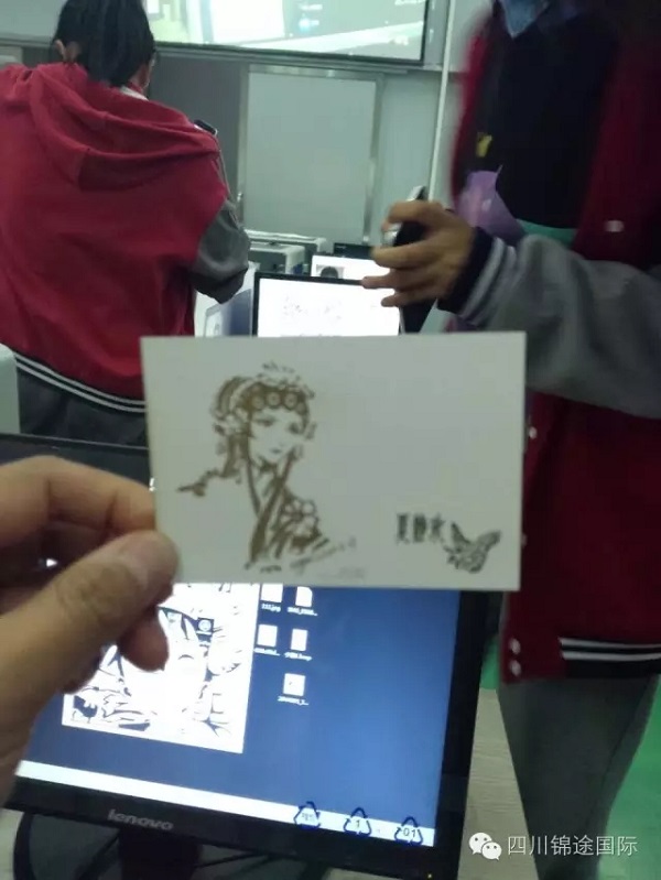 同学们首先在车间主管老师潘老师的带领下参观了机床工作的现场,并了解了原理,争先恐后的开始自己画图形来进行制作了。这是最后的成品,怎么样,不错吧?