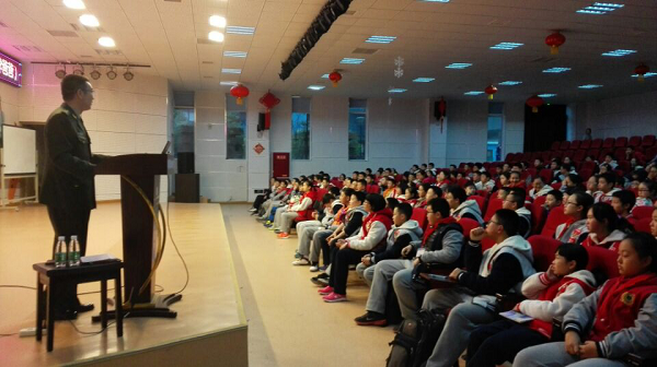 讲座结束之后,家长和同学们围着胡叔叔问很多问题