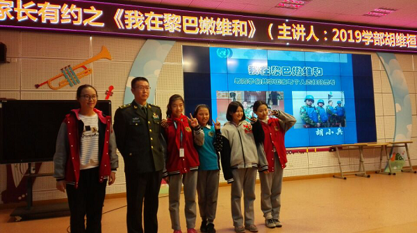 11月23日下午五点钟, 2019级导师2班的胡维桓同学的爸爸给我们带来一场特别生动的“家长有约”讲座,题目是“我在黎巴嫩维和”,讲述他在黎巴嫩维和的点点滴滴,并与我们分享他的关于国家与个人责任的思考。在胡叔叔的精彩讲述中,我们不仅开阔了眼界,还学到了很多知识。