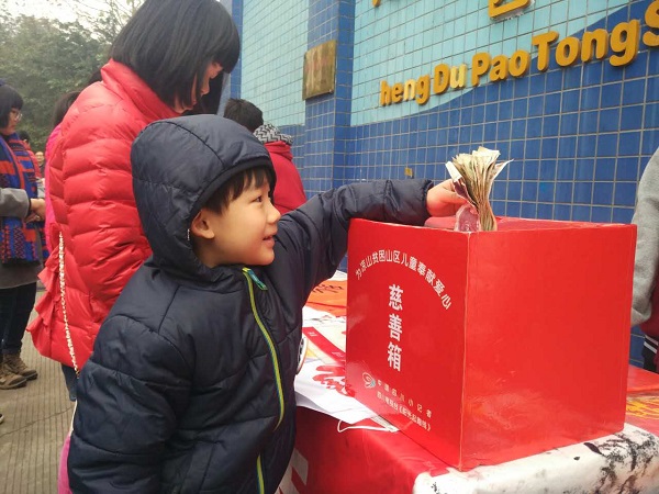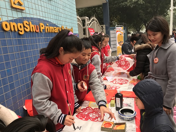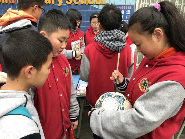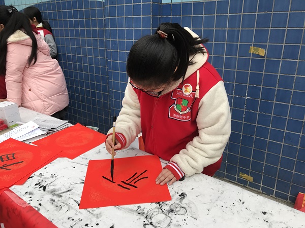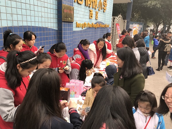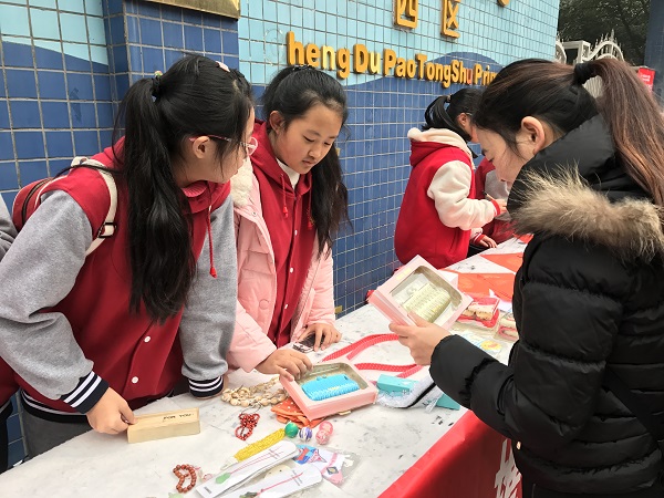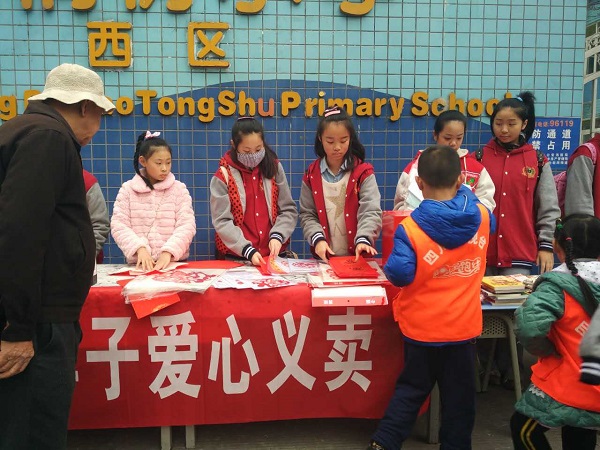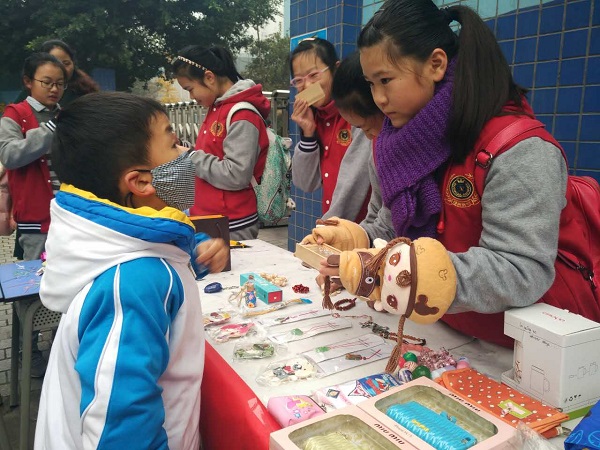 红红火火的义卖在成都灰蒙蒙的雾霾天中涂画出了一抹亮色。廖芝莺创作的唐卡、原创图案剪出的“福”,以及原创的对联,都受到了热捧;罗若菲、简金梁、余青彦,还有泡小西区四年级的小玥玥,也在现场用毛笔书写着他们的爱心;义卖图书和玩具的叫卖声不绝于耳;陈美知灵巧地做着她最爱的手工,吸引了源源不断的爱心顾客前来购买,她忙得都忘了坐下去,就这么在寒风中站了几小时;还有很多小朋友,拿着报纸和大家准备好的剪纸、福字、对联等作品,走上街头,走进小区,卖力的跟行人解释着为什么要做这样的义卖……