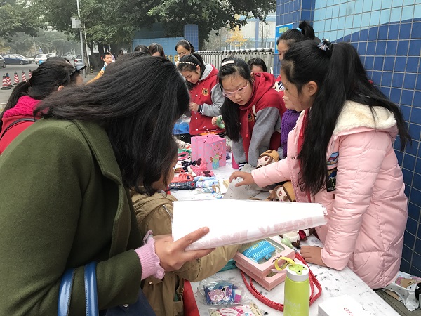 2016年12月4日上午,泡桐树中学“读书吧,少年!”社团发起的为大凉山贫困儿童圆读书梦的义卖,吸引了我校“不织布/无纺布DIY”社团以及泡桐树小学西区、实验小学、实验小学西区、青羊实验中学、石室联中金沙校区、晋阳小学、金童年幼儿园的几十个小朋友参加,半天时间筹得善款3059.8元,加上泡中师生捐赠的1000元,一共筹得善款4059.8元。