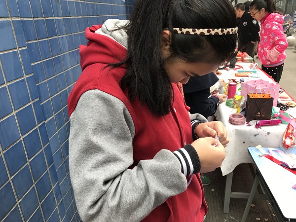 得知义卖的消息,“不织布/无纺布DIY”社团的社长——2018级的陈美知学姐在第一时间表达了参与义卖的意愿,并号召社员们一起积极准备义卖品。