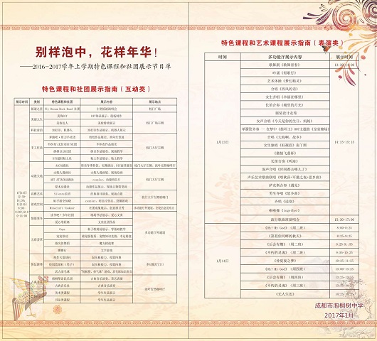 2016—2017年度上学期泡中特色课程和社团展演节目单