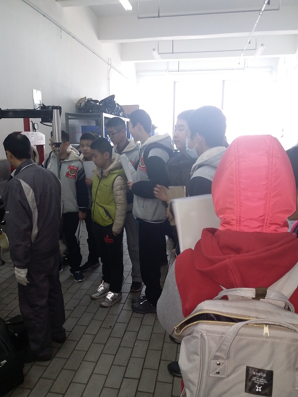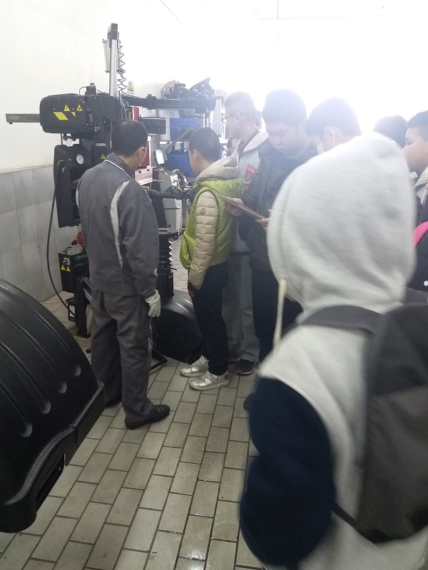 接着我们上了二楼,参观了车间。二楼主要是以换胎、上机油等车内的检修为主。二楼的车间经理给我们介绍了各种修车的工具和部分工具的使用方法,并且特殊的零件需要特殊的工具来修理,而每个工具都有自己的型号,看来修车工人也不容易啊!