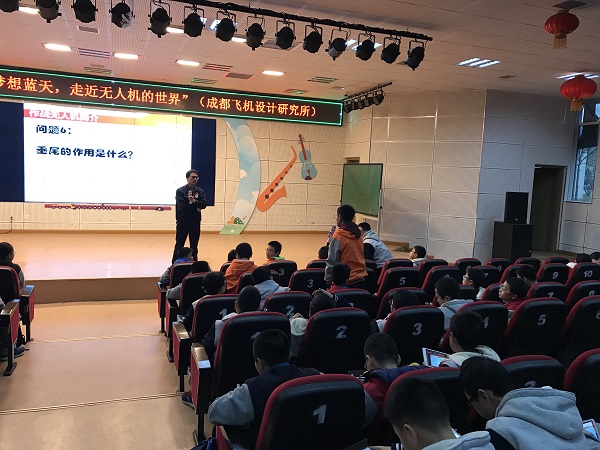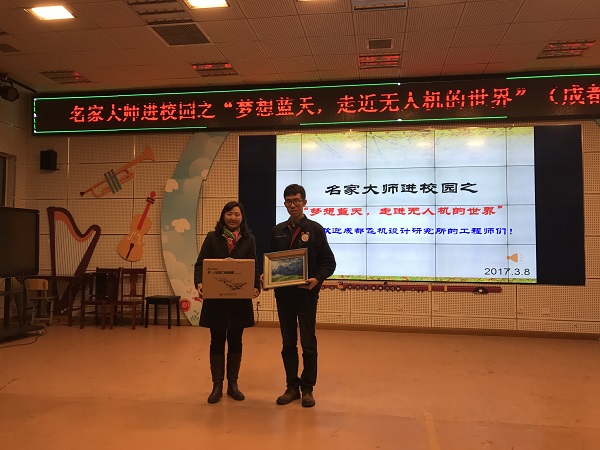 2017年3月8日,由成都飞机设计研究所二部团支部青年同志组成的“吴大观志愿服务队”来到我校,为我校师生献上了一场题为“梦想蓝天,走进无人机的世界”的科普讲座。