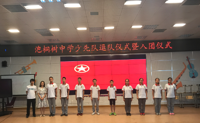 今日清晨,2018学部在阶梯教室隆重举行举行泡桐树中学少先队退队仪式暨入团仪式,这是一个期盼已久的时刻,不仅因为同学们将告别天真烂漫的儿童时代,告别陪伴我们一路成长的少年先锋队;还因为我们将迈进朝气蓬勃的青年时代,迈进意味着更多责任的新的组织——共青团;这意味着,今天将成为我们生命中的一个转折点,我们将从此走向成熟,自强自立;青春的火炬已经点燃,我们就要踏上青春的列车,步入青年的行列。