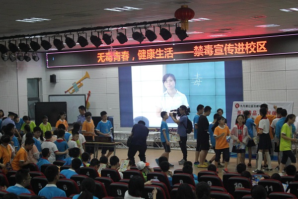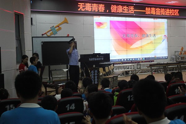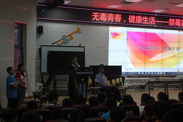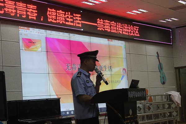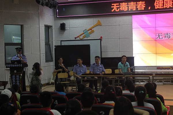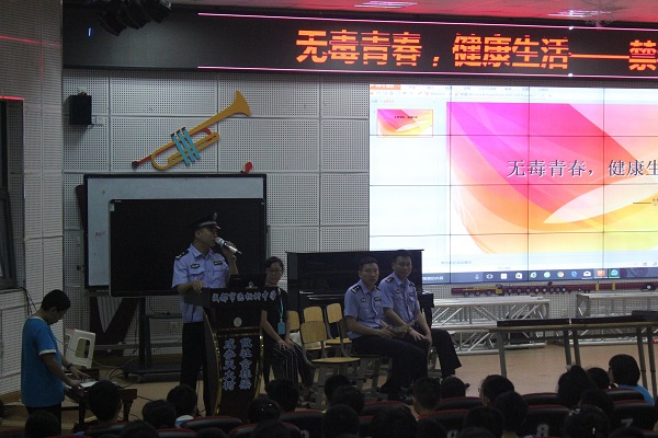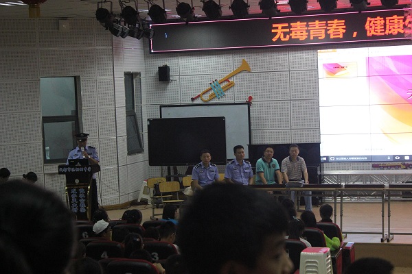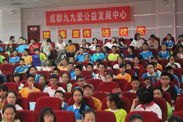 六月二十三日,青羊公安分局禁毒宣传处的警察叔叔们与九九爱公益中心的老师们来到了泡桐树中学,为我们上了一堂有关毒品与禁毒的课程。