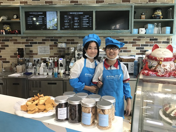 接待组同学的主要工作是作为导购招呼客人“欢迎光临”,并向顾客推荐店内的主打产品。一开始同学们稍显羞涩不愿开口,但经过几批客人的来访,同学们的胆量逐渐大了起来,话语之间也流畅了许多。