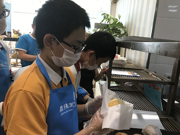 7月9日下午,我校近30名同学参加了北纬30°职业考察烘焙体验,烘焙馆工作人员将学生分为三组,一组完成蛋糕裱花、一组包装糕点、另外一组体验迎宾接待。