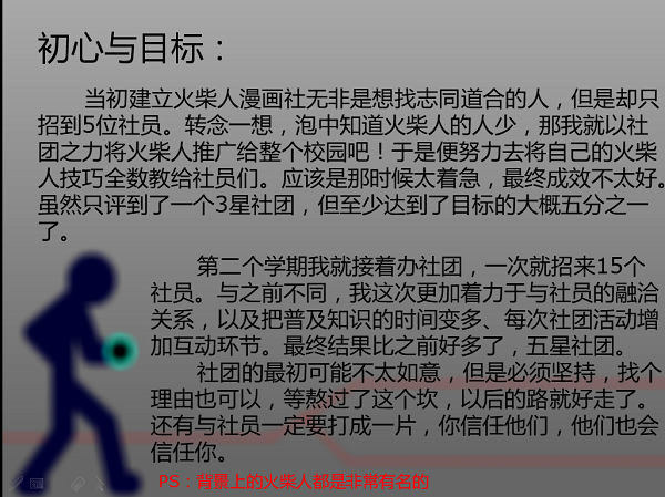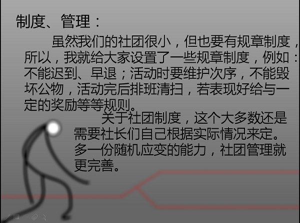 首先,火柴人漫画社社长吴汉向学弟学妹们介绍了自己创建社团的初心与目标,回忆了一年多以来管理社团中遇到的磕磕绊绊,向有意创建社团的同学们传授了许多管理社团的规章制度。