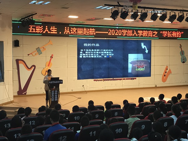 2017年8月30日9:20-10:00,在我校多功能厅进行了2020学部入学教育之“学长有约”活动,来自火柴人漫画社的社长2019级吴汉和来自无纺布DIY社团的优秀社员2019级胡阳露、蒋馨仪向学弟学妹们传授了参加社团活动的“武林秘笈”。
