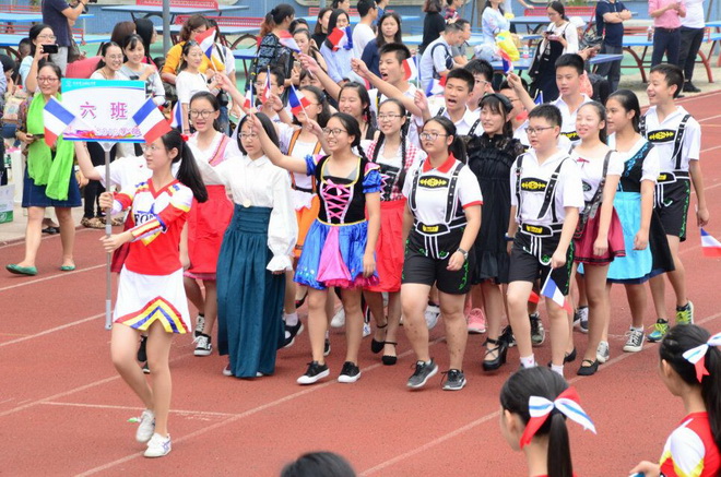 2017年9月30日下午2点,泡桐树中学2018学部、2019学部、2020学部三个年级师生及特邀家长在操场举行了泡桐树中学第四届体育季开幕式和集体项目。本次体育季开幕式以世界各国风采展示为基调,导师们和学生们利用紧张的学习之外的时间,进行多才多艺的歌舞练习。在庄严的国旗方队的带领下,34个国家的导师班方队为大家带来了无与伦比的精彩表演,赢得了家长们、老师们、同学们之间的认可与掌声。