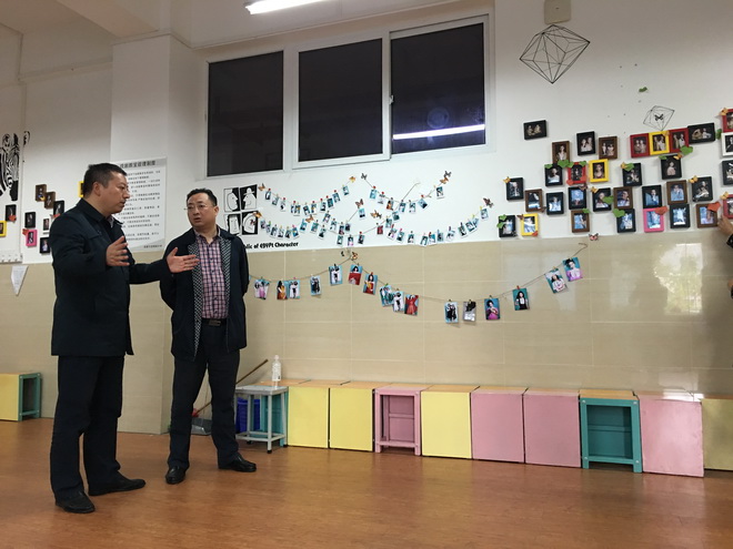 10月17日,青成都市教育局外事处闫处长及青羊区教育局徐局长来我校视察泡中国际化办学水平。