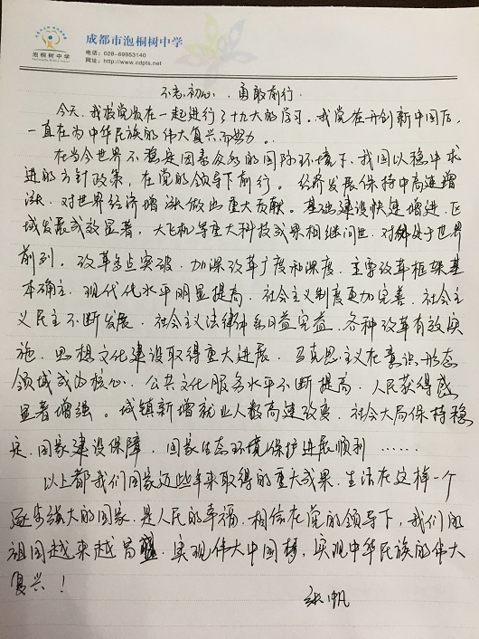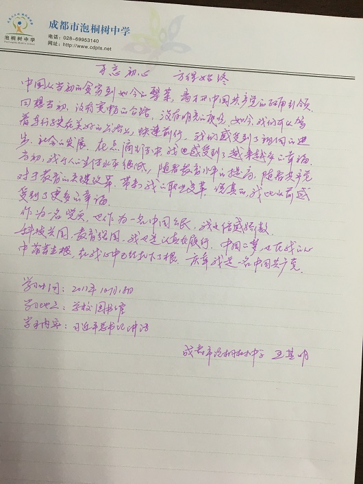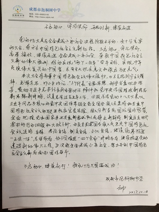 文章关键词: 成都市泡桐树中学,十九大开幕式