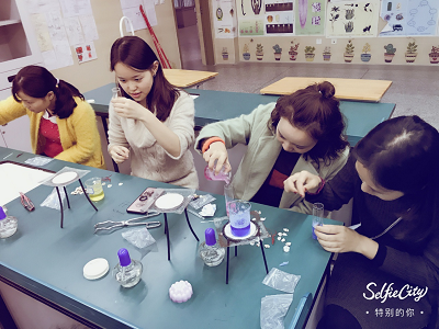 认真做香薰的美女老师们~做香薰蜡烛,静心、放空、然后就是享受