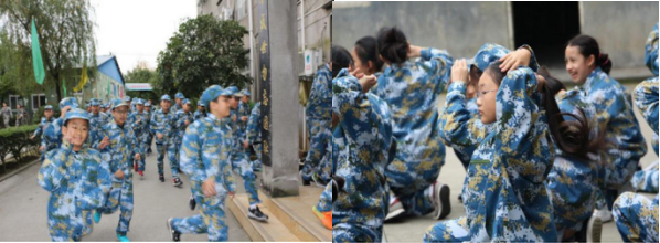 同学们脱下校服,穿上军装,成为小小“军人”