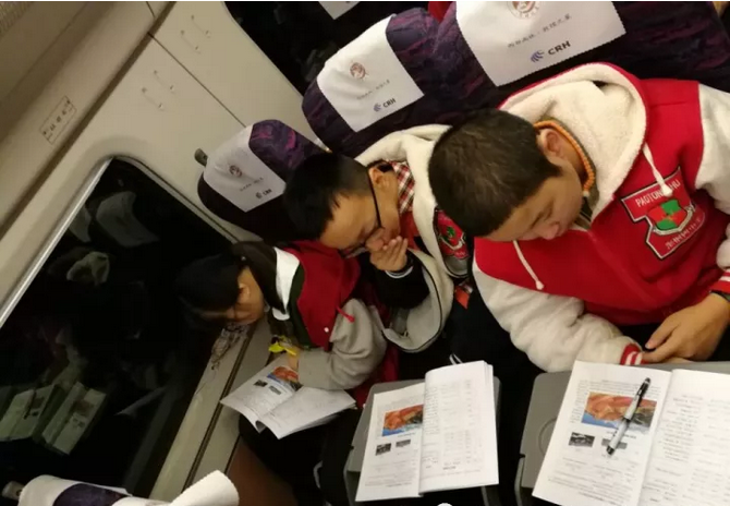 在前往张掖的列车上依旧不忘学习