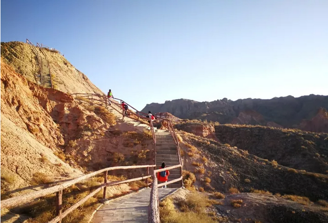 河西走廊研学第三天,同学们参观了以赤红的宫殿型丹霞地貌为主的自然风景区——冰沟丹霞。