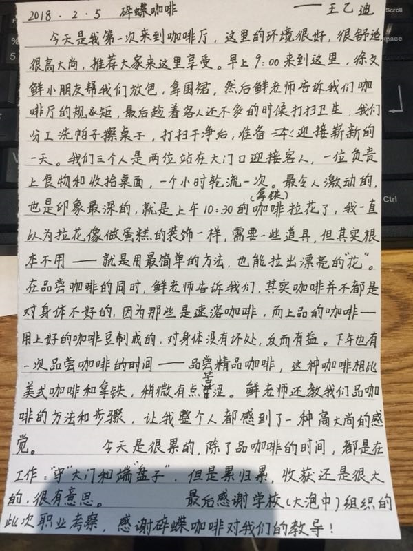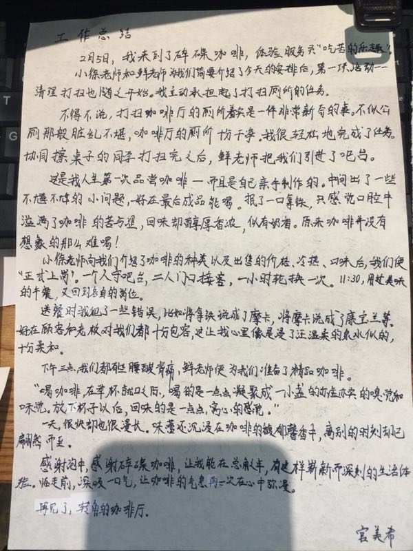 2017年2月1日至7日,我校共21名同学到碎蝶咖啡进行了职业考察,模拟体验了咖啡店店员的工作生活,培养了同学们吃苦耐劳的精神!下面,我们一起来回顾一下碎碟咖啡职业考察的精彩瞬间!
