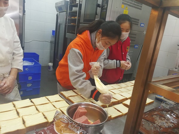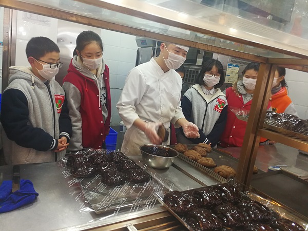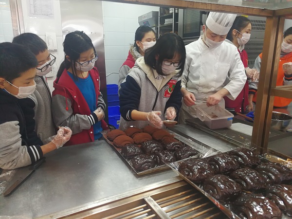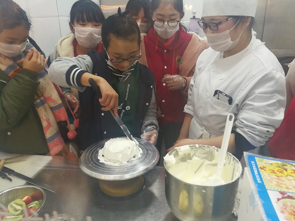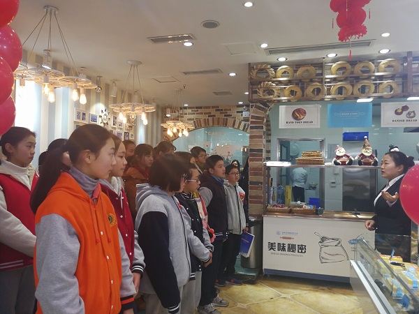 2018年2月3日,泡桐树中学的20名同学前往北纬30度银沙路店进行职业考察。店长先对面包店的工作要求进行了详细的讲解。之后同学们分为3组,一组学习导购,一组跟学面包师,还有一组学习裱花。导购学习从练习站姿到练习用语,同学们都认真地多次演练,期待着真正顾客的到来。跟学面包师的同学们胆大心细地尝试着做“脏脏包”和三明治。而裱花的小组从打奶油,用巧克力写字到做蛋糕胚,同学们都感叹并非想象得那么容易。经过一下午的职业考察,同学们在北纬30度这个店里,不仅体会到了服务行业的辛苦,还明白了以后要换位思考。