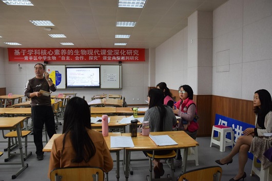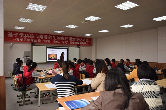 2018年3月27日上午,“基于学科核心素养的生物现代课堂深化研究——青羊区自主、合作、探究课堂的建构”教研活动在成都市泡桐树中学举行。青羊区生物教研员吴强,全区初高中生物教师参加了此次教研活动。