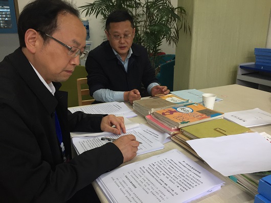 本次督查工作主要围绕泡中自2015年办学以来的档案资料工作,学校教育教学常规情况,学校的宣传规范情况以及学校教室设备的维护等迎检工作。在检查过程中,首先是我校党支部书记赵东带领三位督学进行了学校参观,到学校操场、食堂以及各个教学楼等场所进行了查看,指导学校对校内的文化宣传工作以及实验室设备要进行定期的检查和维护。随后听取了赵书记以及杨超副校长对学校“走班教学”教育改革的工作汇报,查看了泡中特色教学简介、规范办学行为、教育教学常规等各方面的资料。三位督学对学校的迎检工作的准备给予了充分肯定和表扬,并提出了合理化建议,要求学校对提出的问题进行及时的解决!