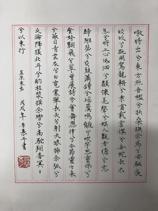 屈原是我国历史上一位伟大的爱国诗人,有着“香草美人”的浪漫,和“以身殉国”的气节,更是楚辞的创立者和代表作家。同学们手抄屈原诗作,以纪念这位中国浪漫主义文学的奠基人。
