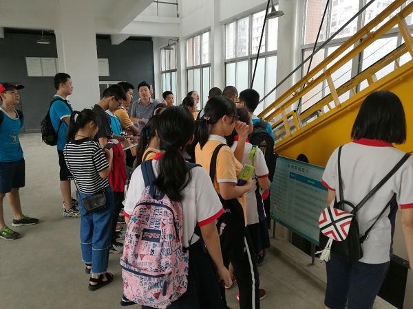 2018年7月14日上午9时30分至12时30分,泡桐树中学的20名“青年才俊”来到川大水电学与山区河流开发保护实验室进行职业考察。同学们首先看到的是接待室内所陈列的部门介绍以及实验室近五年成就(即2013—2017年),这一部分带给同学们最直观的感受即实验室历史悠久、人才济济、硕果累累……在讲解老师的介绍中,我们又了解到,作为国家重点实验室,评选要求也是简单直白——每五年一次,没有绝对的永远,审核整改不过关,就从“重点”中踢出,老师告诉我们,科研也是一样,不进步就只会被别人超越,这和社会、学校生活是一个概念。