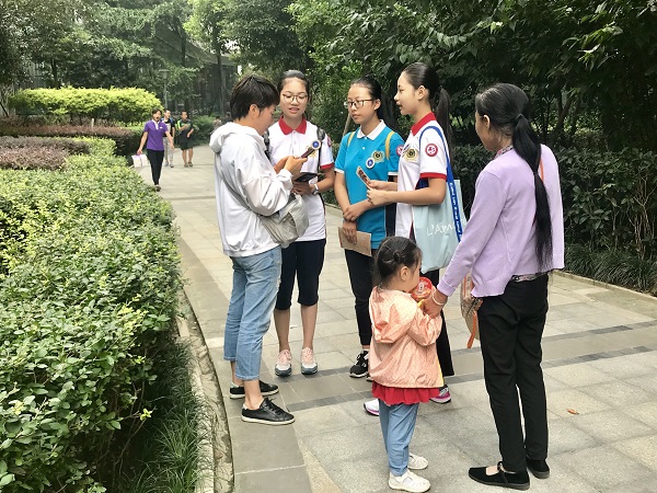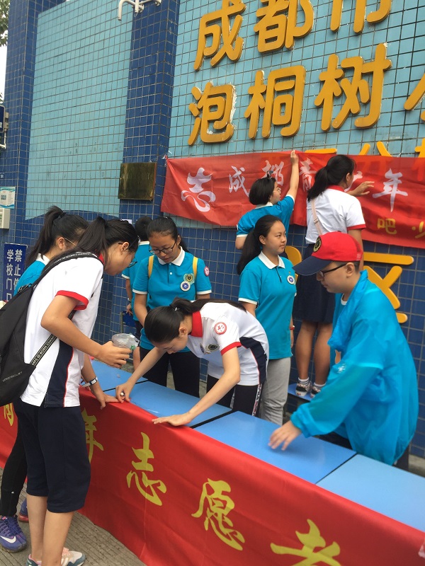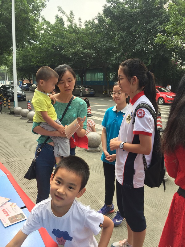 9月8日,2019学部廖芝莺同学带领成都市组织文体类活动第一的“成都青少年志愿者读书吧少年服务队”,2020学部何俊儒、王巧等同学带领全国最具影响力公益社团--泡桐树中学“读书吧,少年!”社团,和泡中的“桐韵阁”等社团一起,到泡桐树小学西区周边开展99公益日“温暖白玉五周年”募捐志愿活动。志愿者们积极主动布置募捐现场,满怀热情地走向街头,宣讲募捐,他们的行动得到社会各界人士的认可和赞许,志愿者们也收获满满。我们的活动不仅锻炼了参与募捐的青少年志愿者,还感染了更多的人加入公益的行列。不少家长带着孩子来到现场募捐,用自己的行动教育自己的孩子从小就要做个有爱心、乐于奉献的人。