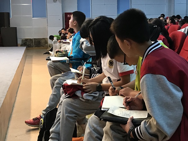 同学们的眼睛中闪烁着明亮光芒,我知道这是活力、坚定、与斗志碰撞出的结晶。我相信,我们也能像台上的专家一样,为国家工作,为国家奋斗,为国家谱下最好的未来!