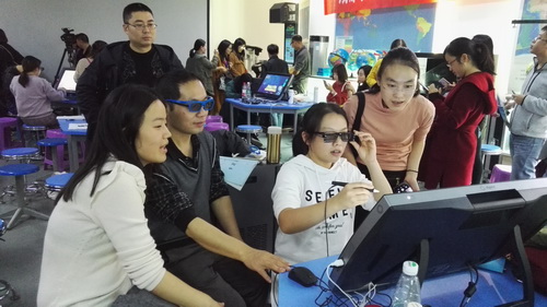 我校地理教师体验VR在地理教学中的应用