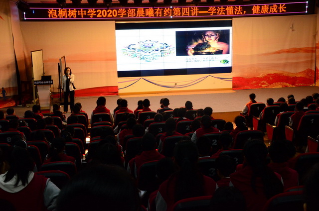 2018年10月15日晨曦有约活动中,初2020学部邀请了学校政治与思想教研组组长余姣老师作了《一念之差、一步之遥》的法制讲座。余老师在讲座中谈到了宪法、教育法、义务教育法、预防未成年人犯罪法等与我们青年学生相关的法律条款。明确了不良行为,严重不良行为,犯罪的区别与联系。初2020学部的同学们听得很认真。余老师的讲座将法制教育与学生的生活紧密联系起来,为学生养成学法、懂法、依法办事的好习惯奠定了基础,有效地树立和维护学校良好的学风,使同学们慢慢成为遵纪守法,对社会有用的好公民。