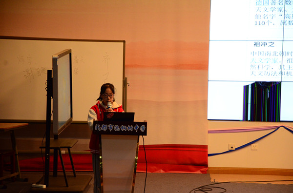 首先,数学教研组长邹伶老师宣布活动正式开始,四位学生代表依次上台向同学们分享他们的数学见闻。第一位上台的戴思宇向同学们介绍了第三次数学危机的产生和解决过程,让同学们感受到数学是一门严谨和趣味共存的学科;紧接着王哲衡同学由毕达哥拉斯的地板问题引出勾股定理的由来,让同学们发现数学问题源自生活,又应用于生活;接下来赖飞越敏同学讲述了神奇的斐波那契数列、叶雨昕同学和大家分享了数学学习的技巧和她的学习经验。过程中台下的同学听得津津有味,仿佛进入了一个有关数学的奇妙殿堂。