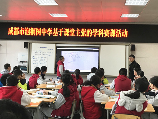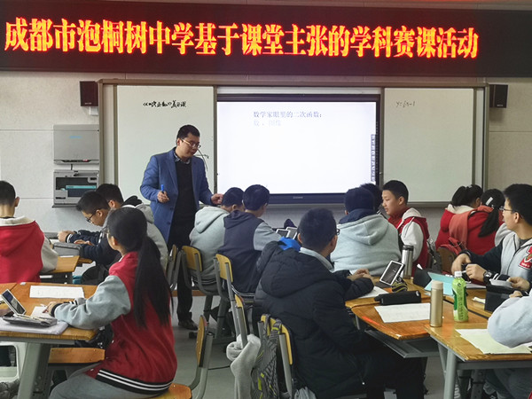 12月3日,成都市泡桐树中学基于课堂主张的学科赛课活动正式拉开序幕。学校特邀青羊区数学教研员潘绍茂老师、区中心组成员李光雅老师、岳迎春老师作专业评审,为五位参赛老师打分。五位赛课老师充分展示了他们的课堂风采,为青年教师作出了良好示范。