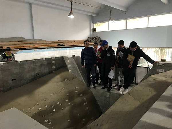 学院老师热情的接待了我们。老师首先在大厅给我们介绍四川大学的历史与研究方向、成果。还有一张巨大的中国地图,接着老师把我们带到了一块模拟场地,这块模拟场地上有各种水库、水电站、水动装置的模型他们向我们介绍了实验室的发展情况,带领参观了室外的河流动力学模型。我们还了解了水工结构实验室,该实验室的变温相似材料地质模型为业界首创。我们还参观了水动力学实验室,该实验室陈列有水轮机模型,循环水洞试验段流速和压力可以分别控制,水流在管路中循环、用以研究高速水流的密封实验装置。这些设备引起了同学们的好奇心。专家们还讲解了岩土工程方面的实验设备。